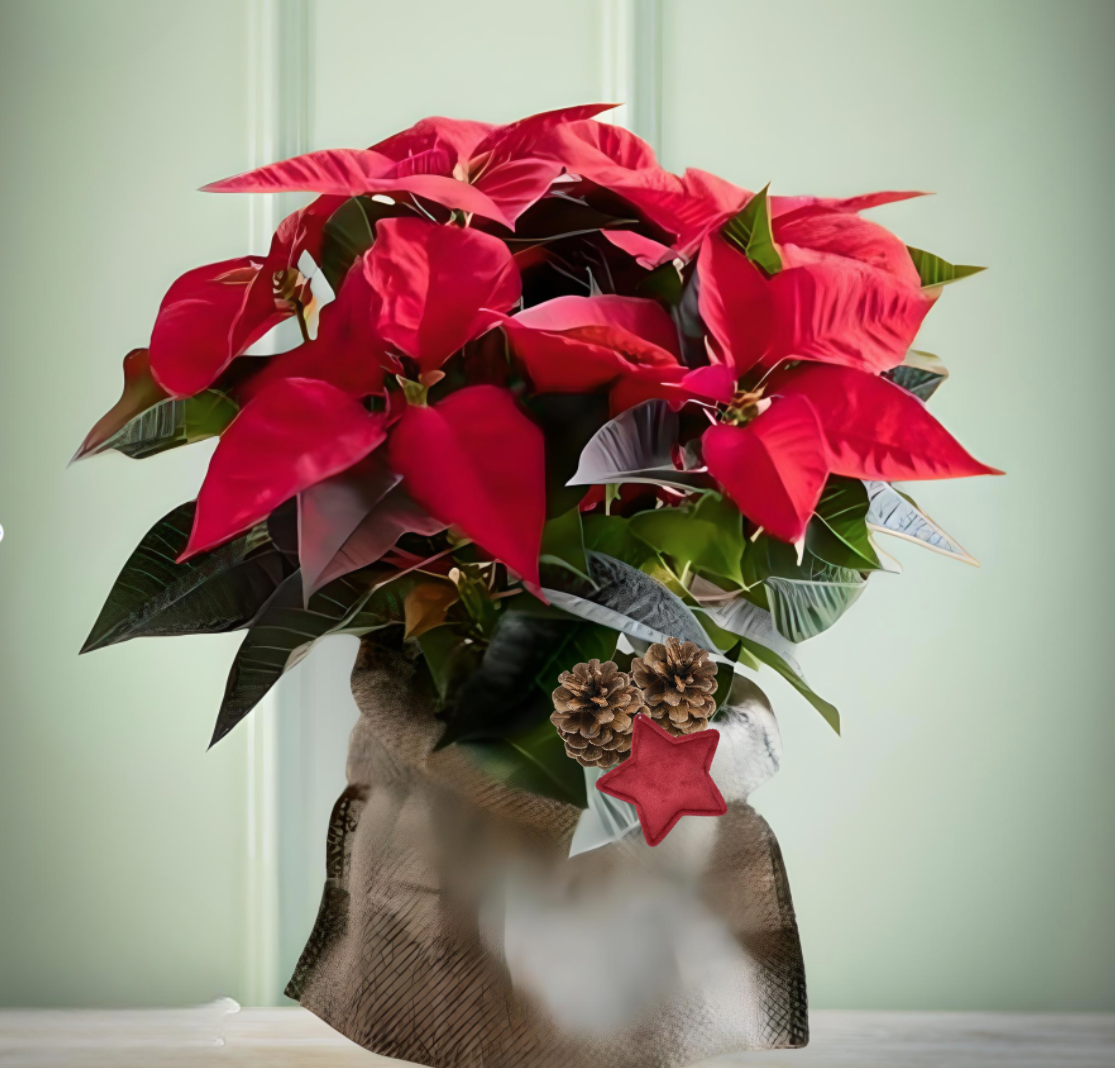 Phoinsethia tamaño L con saco impermeable y decoración navideña. ( estrellas y piñas)